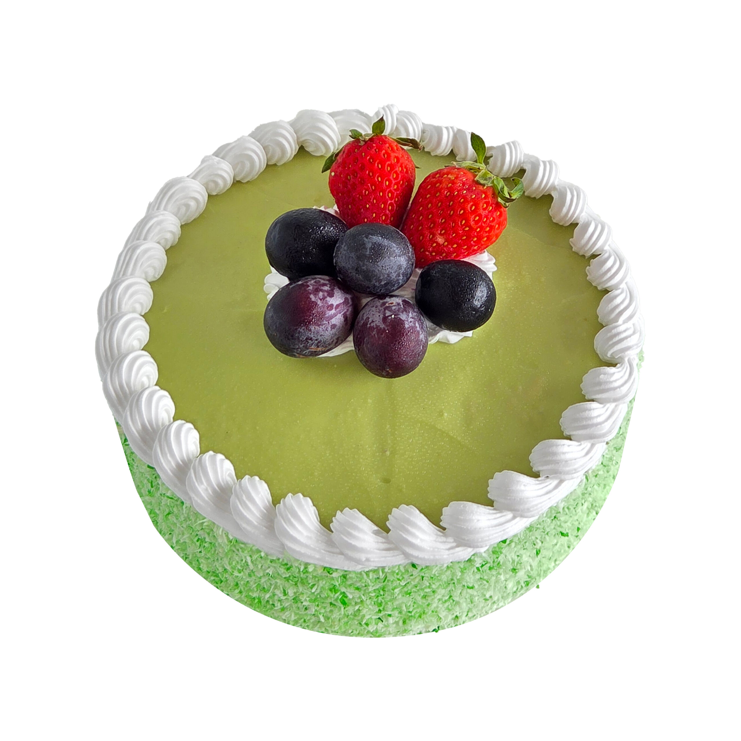 Mirana’s Classic Kaya Cake: A timeless traditional favourite made from our family recipe since 1986. Soft and fluffy sponge cake layered with fragrant homemade kaya, slowly cooked with fresh coconut milk and real pandan leaves. Finished with a light creamy topping and fresh fruit for a refreshing and nostalgic taste